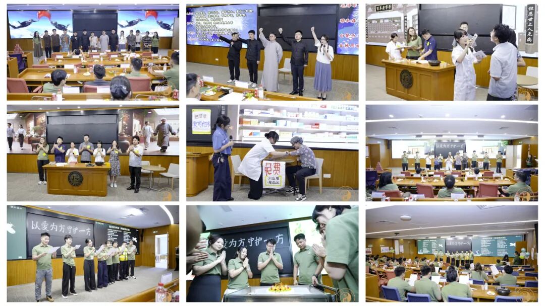 学员围绕“立志、传承、守护”三大主题,以情景剧、歌曲串烧形式设计毕业节目,台前幕后的默契配合,灵动诠释了二代们的青春芳华与逐梦决心。“立志”主题围绕青年毛泽东成长故事,二代同学共同立下“大医精诚、百年经营”的铿锵誓言;“传承”主题围绕药店老一辈与二代接续的故事,演绎出“传承家业、医者仁心”的赤诚;“守护”主题则围绕医药人守护一方健康的感人故事,描绘坚守“以爱为方,守护一方”的初心与笃定。当《守护者》音乐响起,手语舞将全场代入真实“守护”情境,学员褪去“学习者”身份,化身为了真正肩负责任的医药行业“守护者”。精彩的毕业演出不仅彰显了学员的蓬勃朝气,更是点燃全场热情,将“薪火相传,基业长青”的信念铭刻于心!