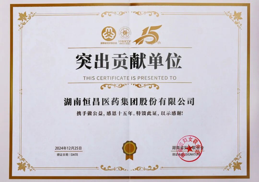 恒昌医药集团荣获湖南省妇联“突出贡献单位”称号