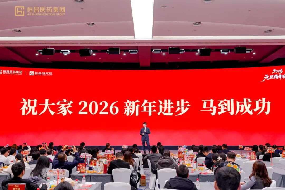 元启新章,岁律更新。2025年的奋斗征程圆满收官,2026年农历马年正踏风而来。值此新旧交替的重要时刻,2025年12月31日晚,恒昌医药举办一年一度兼具温度与深度的元旦跨年晚会。值得一提的是,本次跨年晚会有了古汉医药伙伴们的加入,双方以思想为纽带凝聚奋进力量,为新一年的壮阔征程吹响集结号角,让2026年成为彼此有生以来最拼命的一年。