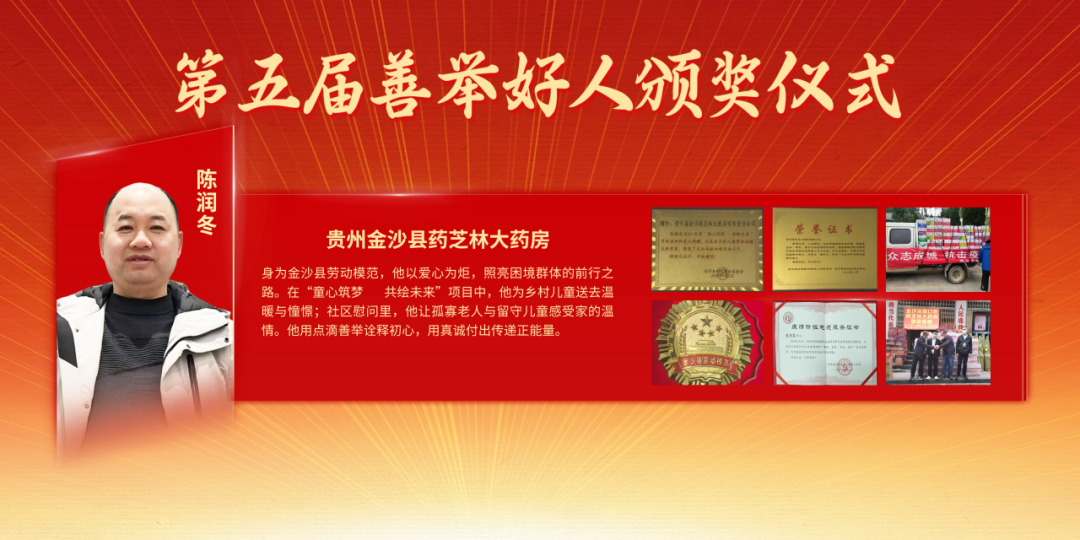 贵州金沙县药芝林大药房陈润冬,身为金沙县劳动模范,他以爱心为炬,照亮困境群体的前行之路。在“童心筑梦 共绘未来”项目中,他为乡村儿童送去温暖与憧憬;社区慰问里,他让孤寡老人与留守儿童感受家的温情。他用点滴善举诠释初心,用真诚付出传递正能量。