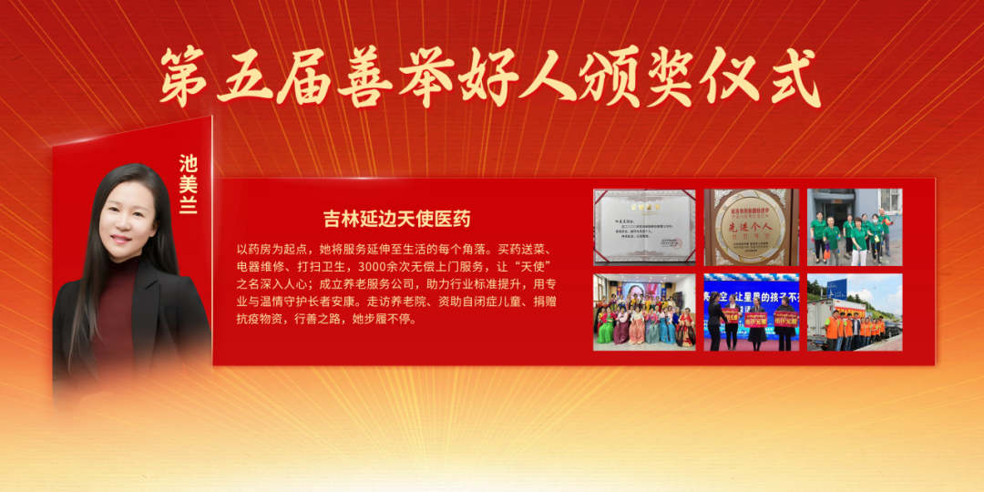 吉林延边天使医药池美兰,以药房为起点,她将服务延伸至生活的每个角落。买药送菜、电器维修、打扫卫生,3000余次无偿上门服务,让“天使”之名深入人心;成立养老服务公司,助力行业标准提升,用专业与温情守护长者安康。走访养老院、资助自闭症儿童、捐赠抗疫物资,行善之路,她步履不停。